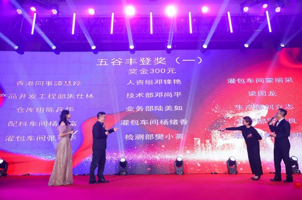 大家最期盼的晚会重头戏——抽奖活动,在此起彼伏的一阵阵欢呼声中设定七个奖项被陆续抽出。然而现场参会人员意犹未尽,用热情、激昂的呐喊声邀约董事长和总裁们为晚会制造顶点气氛,感受到现场的热烈,董事长、总裁副总裁们纷纷赞助现金作为惊喜大奖额外分批抽出,不断刷新晚会气氛。