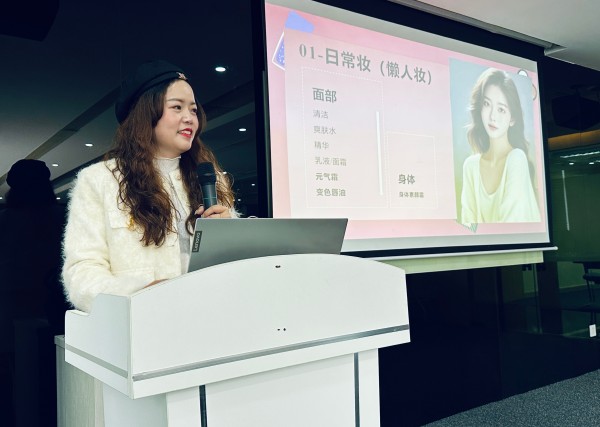 此次活动特别邀请市场部高级业务邓经理为女神们现场培训讲解,高宝爆品的特性及优势和不同场合化妆的使用方法。