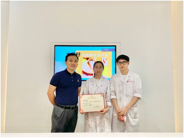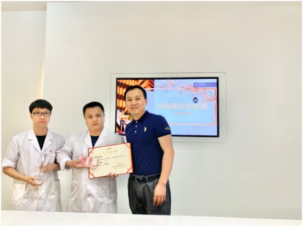 颁奖嘉宾(左一):技术部何经理,获奖者(左二):张诗琪,(右):周健