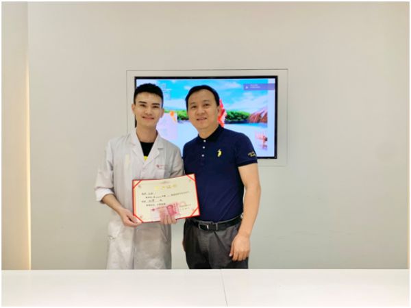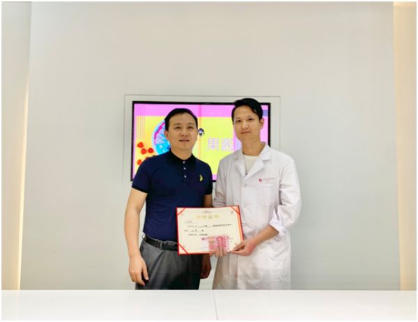 颁奖嘉宾(左):技术部何经理,获奖者(右):王启威