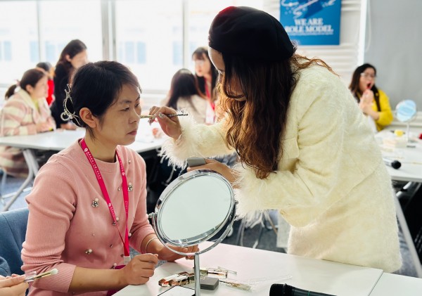 现场女神们认真学习,将产品理论与实际化妆技巧结合起来,在实操中更加的了解了每个产品的功能,大家互相交流,对比各自的化妆技巧。并学习到了妆容和场合的匹配关系,在任何时候都能展现出自己美好的状态,最后成功打造了三种不同场合的妆容。